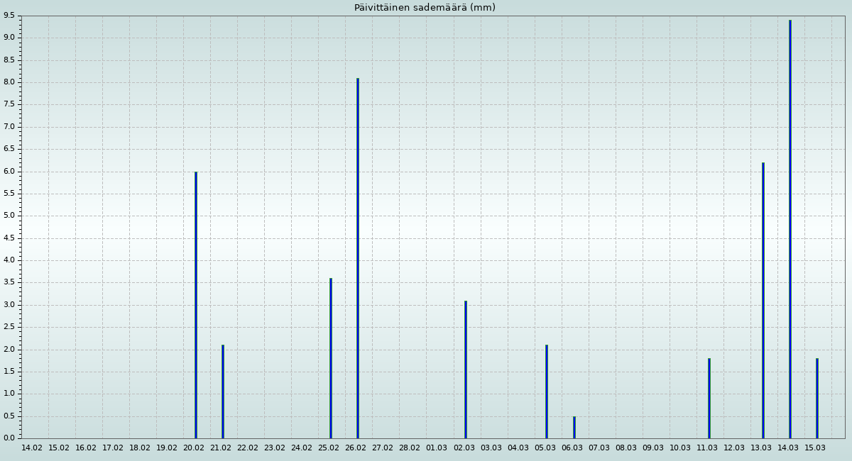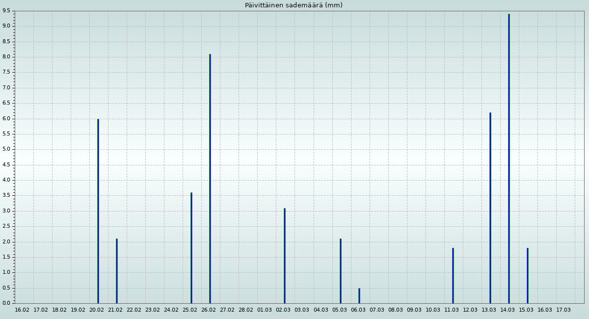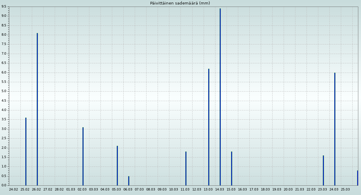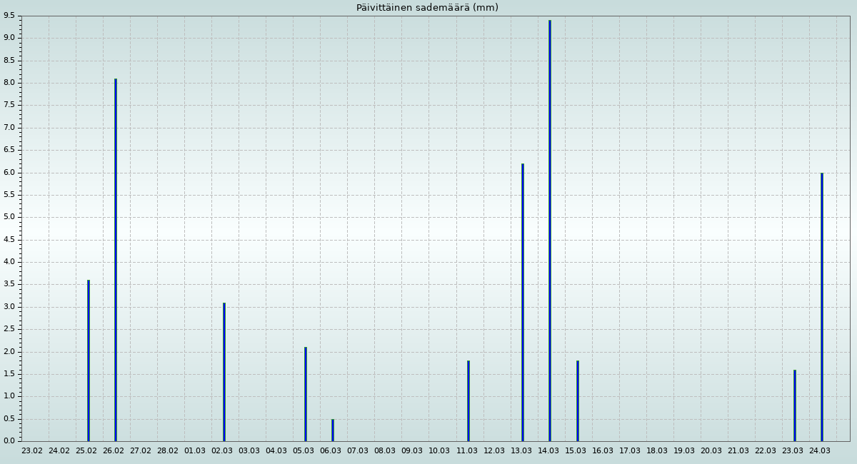 Sademäärä viimeisen 24 tunnin aikana