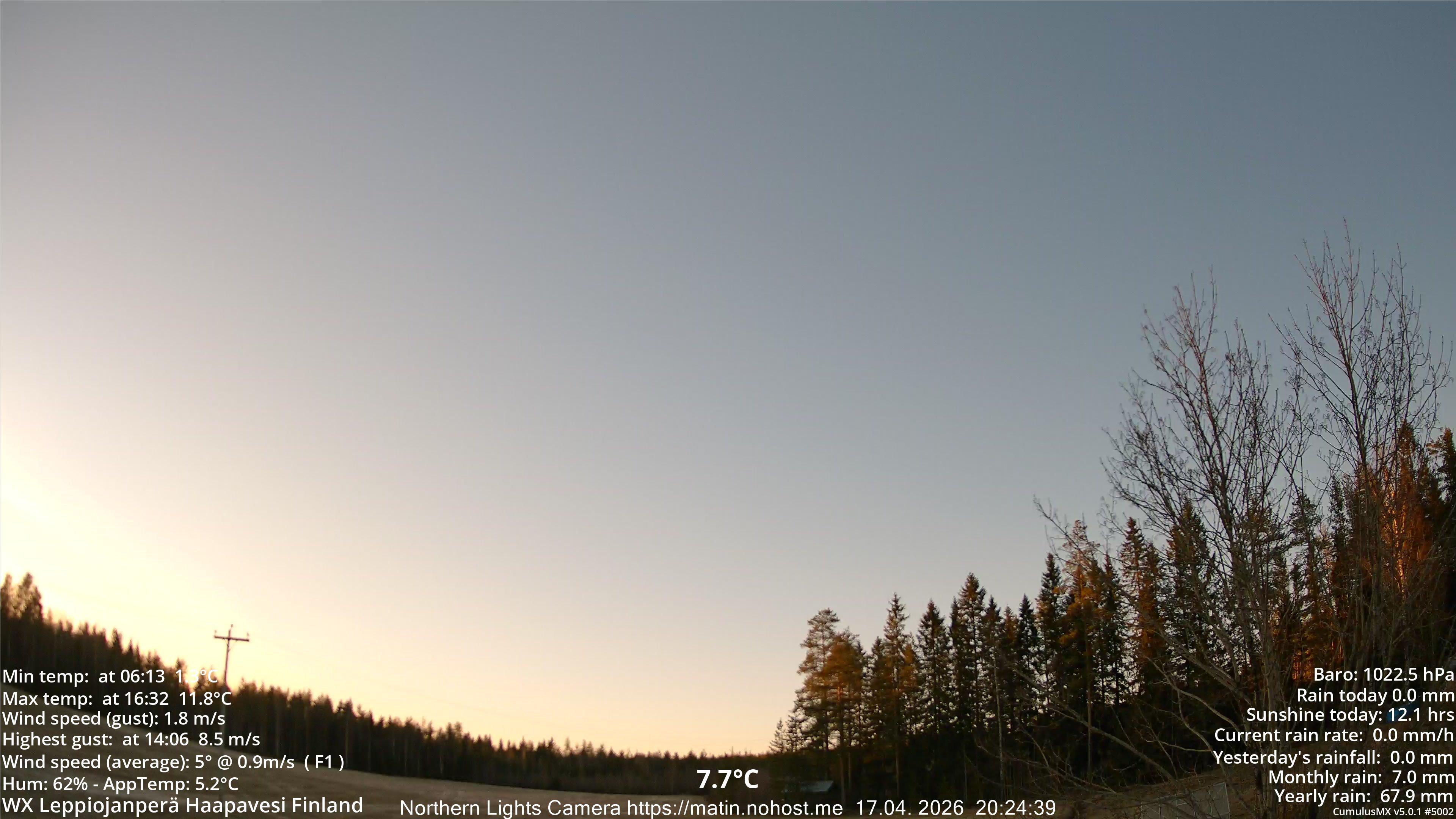 | 7 | Ylivieska Airport (Finland) | 02755 | -5.4°C |