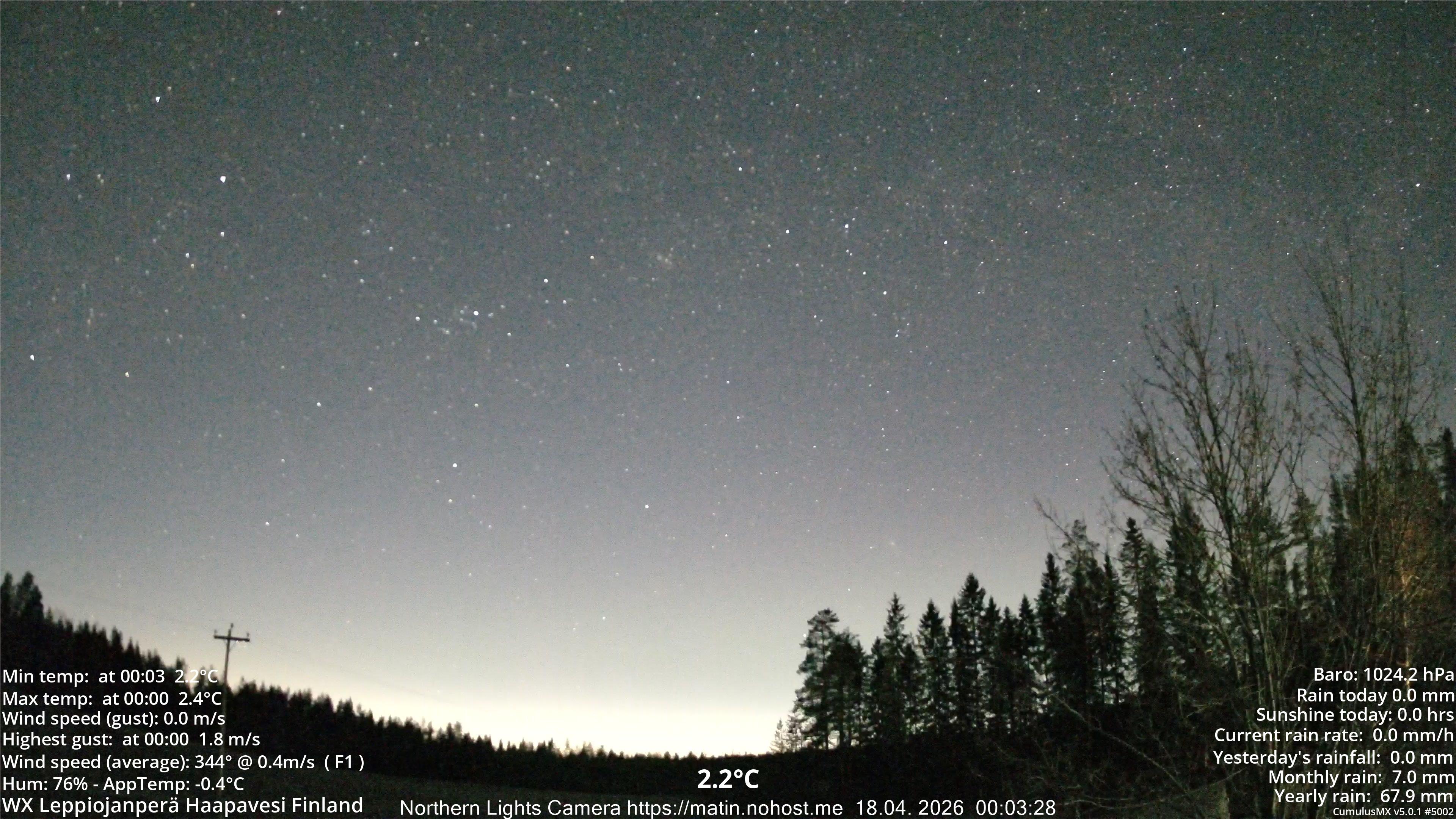 | 7 | Ylivieska Airport (Finland) | 02755 | -5.4°C |