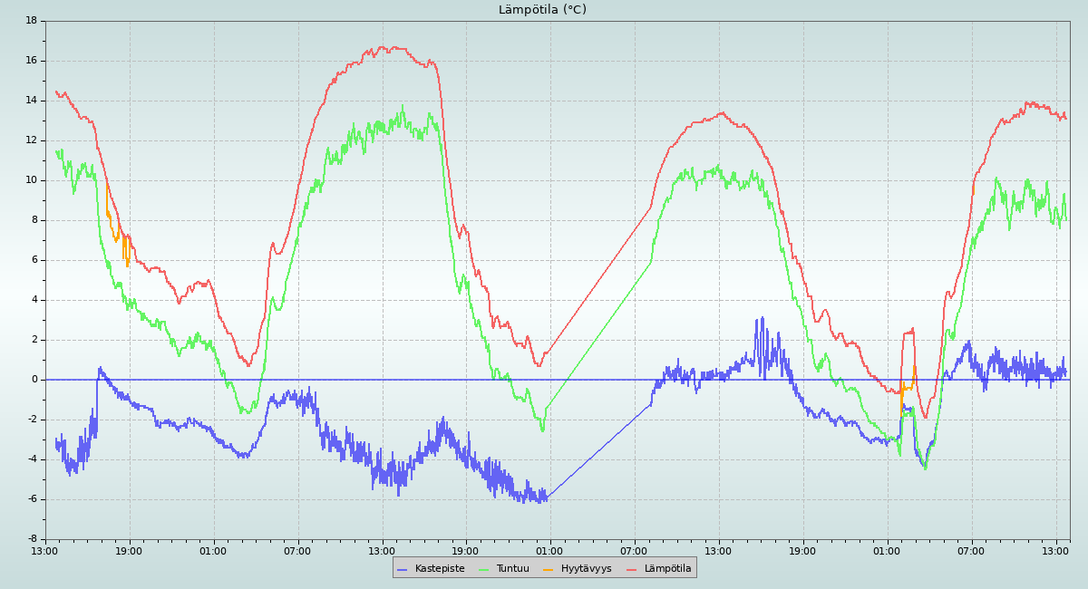 Tämä sivu päivitetään minutin välein. Sääasemalla käytetty sääpäivä päättyy klo 24:00.