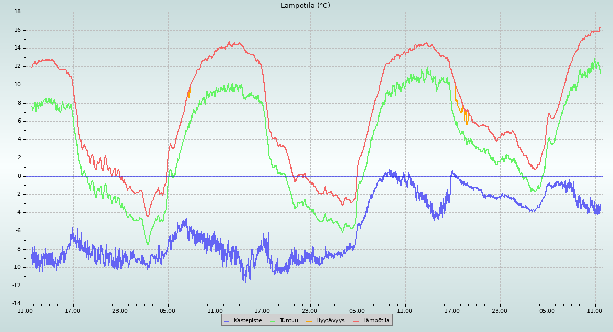 Tämä sivu päivitetään minutin välein. Sääasemalla käytetty sääpäivä päättyy klo 24:00.